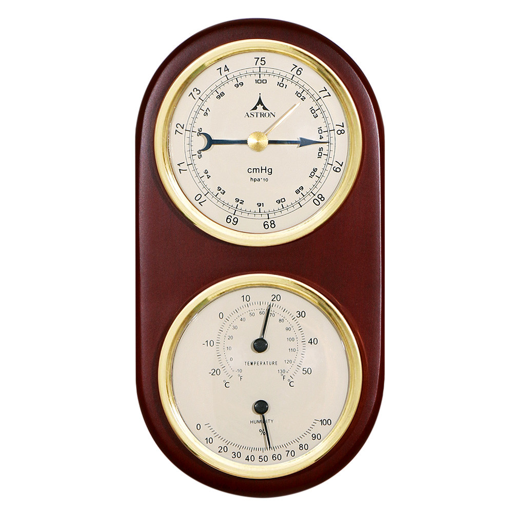 Astron fa fali, barométer, hőmérő, páratartalom mérő, mahagóni színű