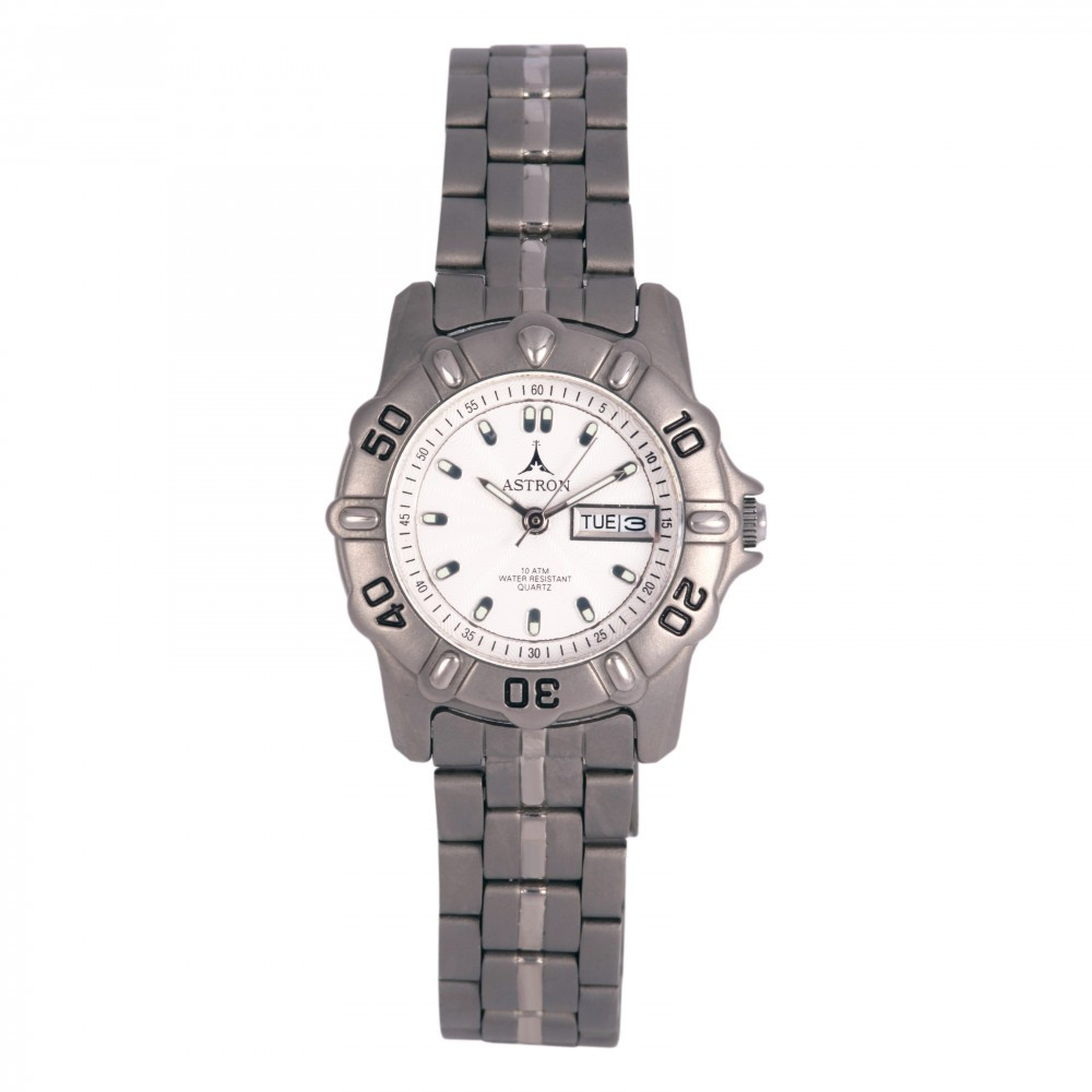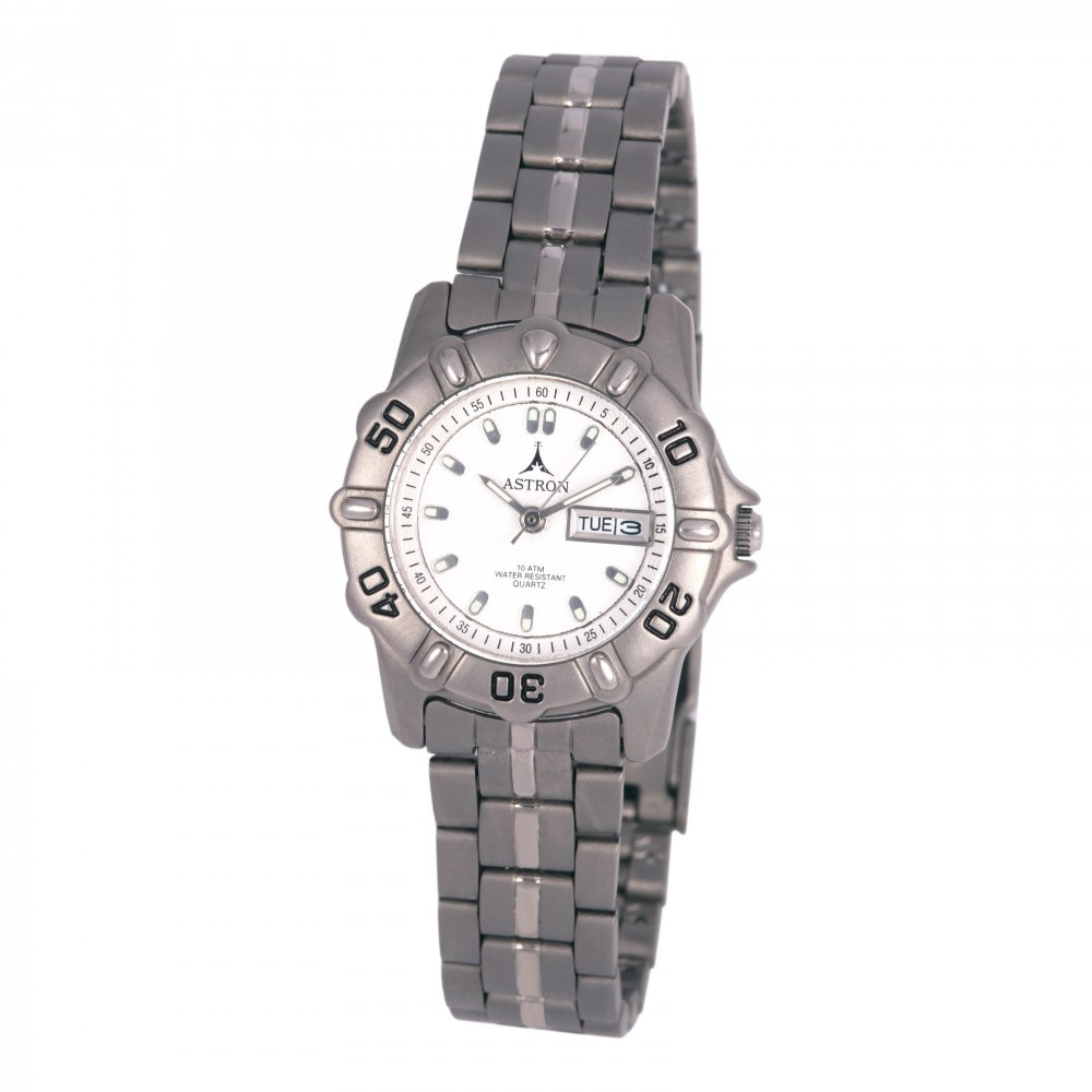 ASTRON 5015-7 női karóra, szürke színű titánium tok, titánium csat, fehér számlap, keményített ásványüveg, quartz szerkezet, 100 m (10 ATM) vízállóság