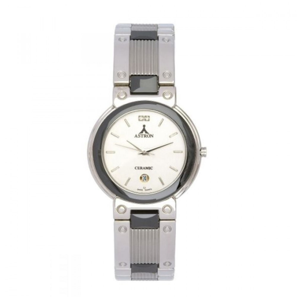 ASTRON 5020-7 férfi karóra, ezüst színű kerámia tok, ezüst színű kerámia csat, fehér számlap, keményített ásványüveg, quartz szerkezet, cseppmentes vízállóság