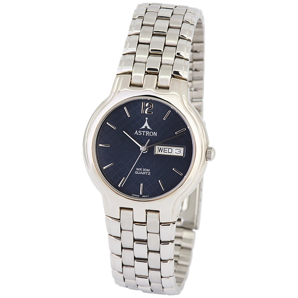 ASTRON 5035-2 divatos férfi karóra, ezüst színű fém tok, ezüst színű fémcsat, arab számos, kék számlap, keményített ásványüveg, quartz szerkezet, cseppmentes vízállóság