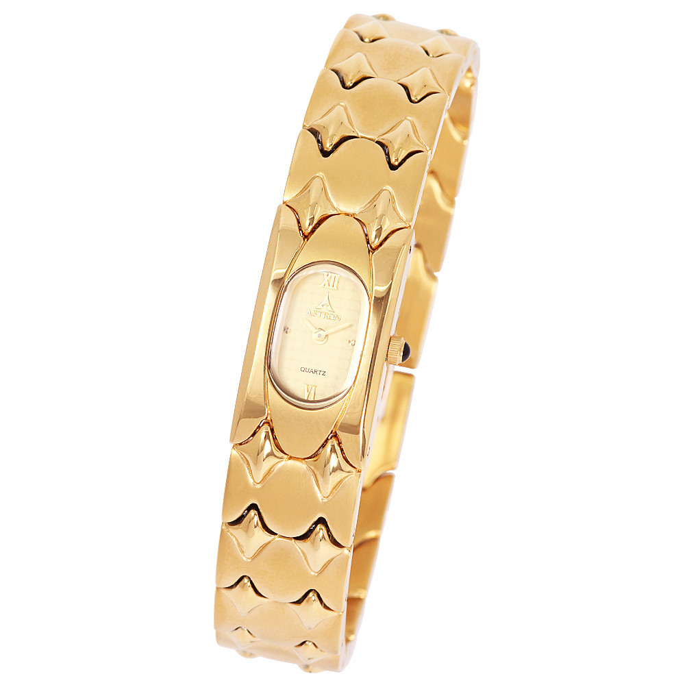 ASTRON 5046-9 női karóra, arany színű nemesacél tok, arany színű nemesacél csat, római számos arany színű számlap, keményített ásványüveg, quartz szerkezet, cseppmentes vízállóság