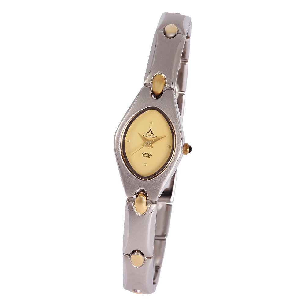 ASTRON 5078-9 női karóra, ezüst színű fém tok, bicolor fémcsat, arany színű számlap, keményített ásványüveg, quartz szerkezet, cseppmentes vízállóság