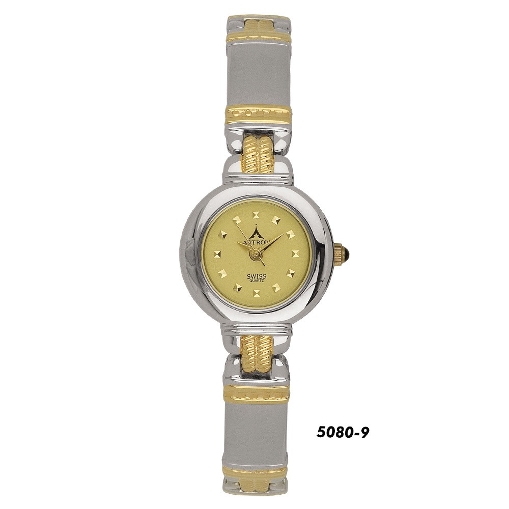 ASTRON 5080-9 női karóra, ezüst színű fém tok, bicolor fémcsat, arany színű számlap, keményített ásványüveg, quartz szerkezet, cseppmentes vízállóság