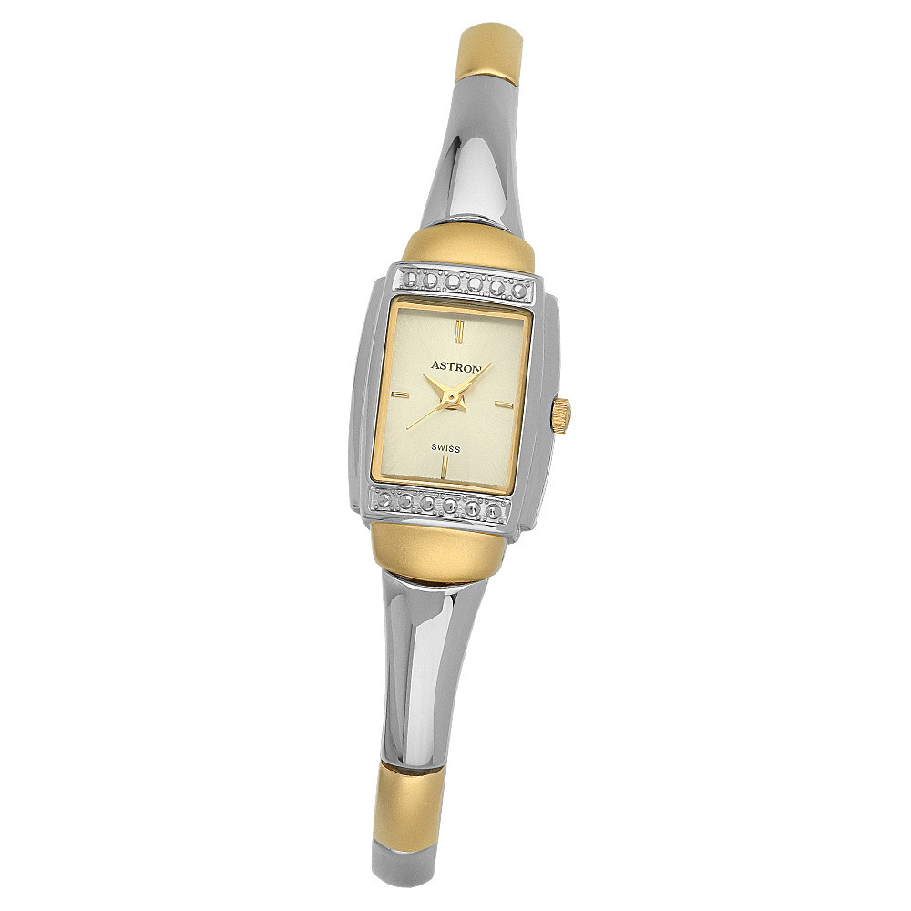 ASTRON 5185-5 női karóra, bicolor színű nemesacél tok, bicolor fémcsat, arany színű számlap, keményített ásványüveg, quartz szerkezet, cseppmentes vízállóság