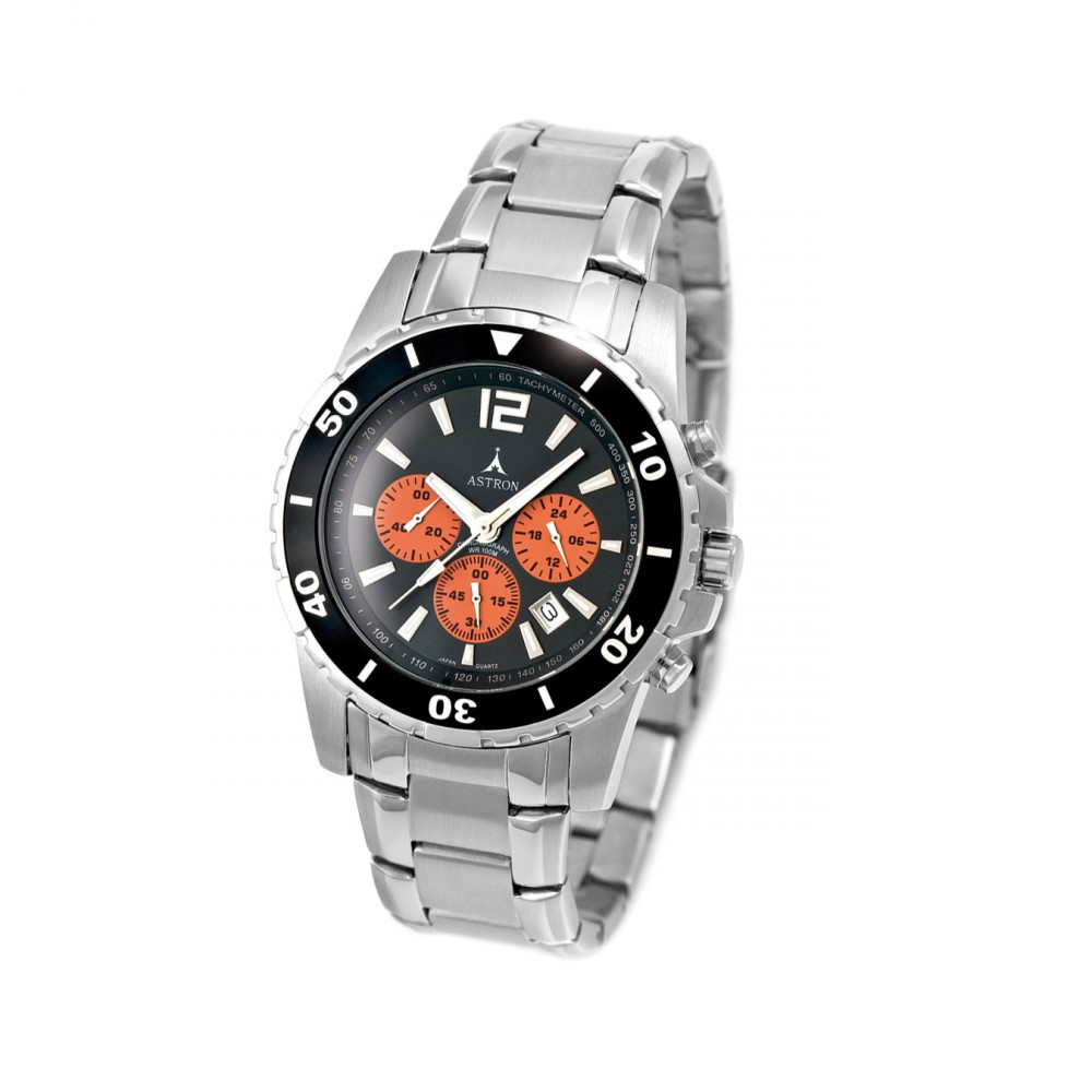 ASTRON 5198-4 férfi karóra, ezüst színű nemesacél tok, ezüst színű nemesacél csat, fekete számlap, keményített ásványüveg, quartz szerkezet, 100 m (10 ATM) vízállóság