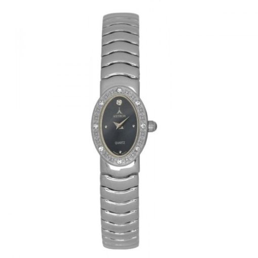 ASTRON 5244-2 női karóra, ezüst színű fém tok, ezüst színű fémcsat, fekete számlap, keményített ásványüveg, quartz szerkezet, cseppmentes vízállóság