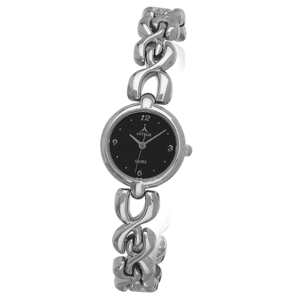 ASTRON 5250-1 női karóra, ezüst színű fém tok, ezüst színű fémcsat, fekete számlap, keményített ásványüveg, quartz szerkezet, cseppmentes vízállóság