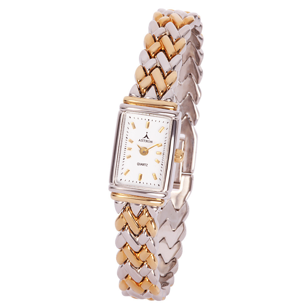 ASTRON 5255-7 női karóra, bicolor színű fém tok, bicolor fémcsat, fehér számlap, keményített ásványüveg, quartz szerkezet, cseppmentes vízállóság