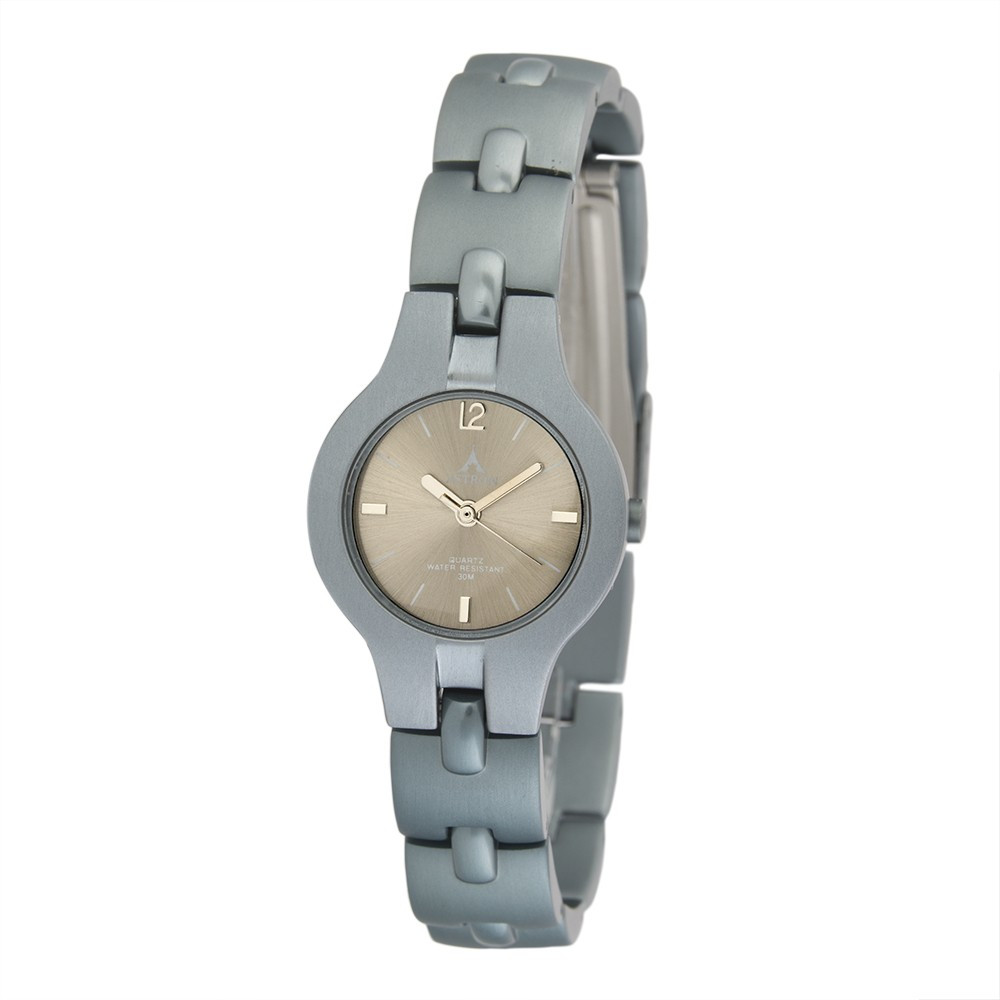 ASTRON 5261-4 női karóra, ékszeróra, szürke színű ALUMÍNIUM tok, arany színű ALUMÍNIUM csat, barna számlap, keményített ásványüveg, quartz szerkezet, cseppmentes vízállóság