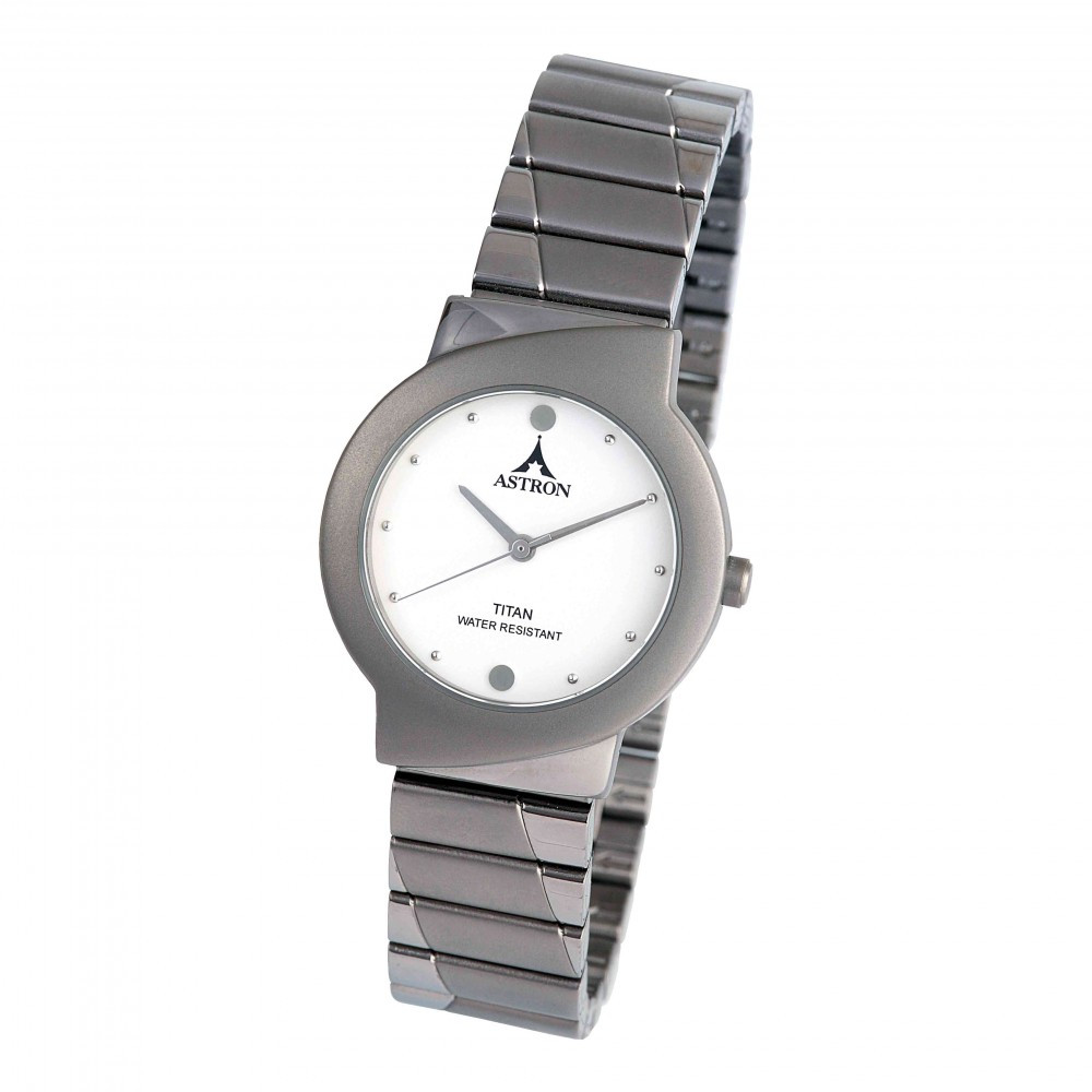 ASTRON 5262-7 női karóra, ékszeróra, szürke színű titánium tok, titánium csat, fehér számlap, keményített ásványüveg, quartz szerkezet, cseppmentes vízállóság