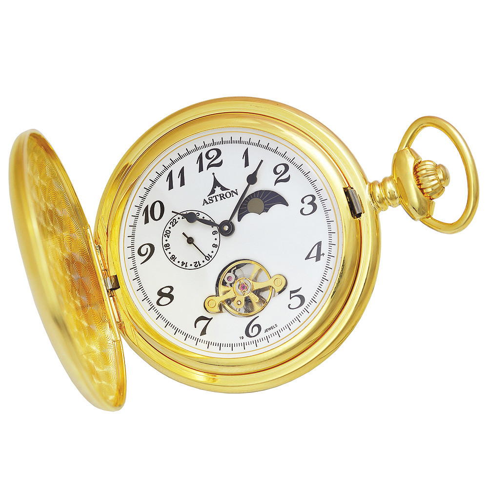 Astron férfi zsebóra, mechanikus, arany színű fémtok, fehér színű / arab számos számlap