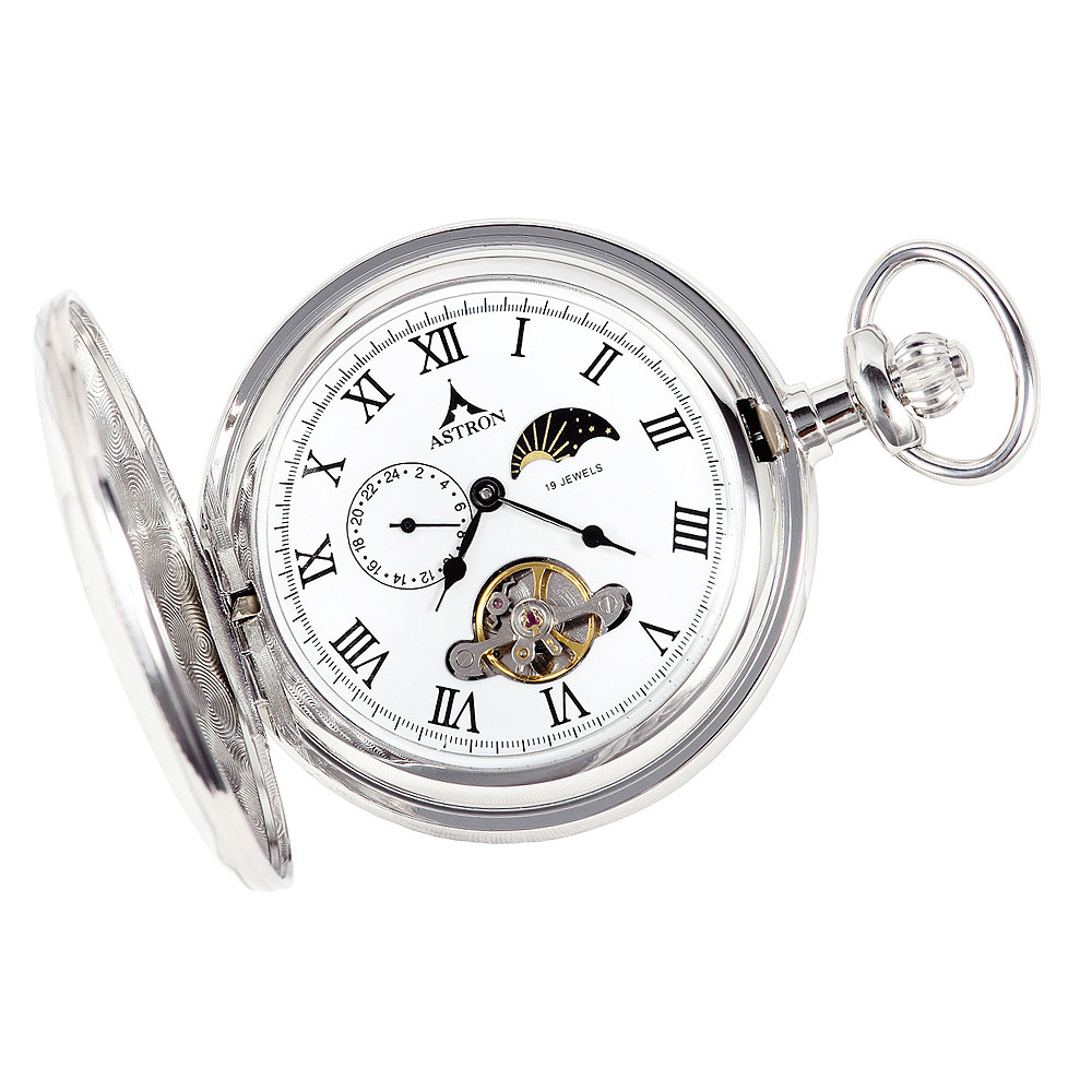 Astron férfi zsebóra, mechanikus, ezüst színű fémtok, fehér / római számos számlap