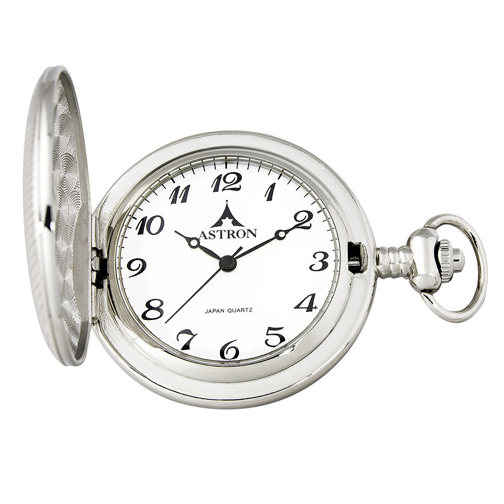 Astron férfi zsebóra, quartz, ezüst színű fémtok, fehér / arab számos számlap