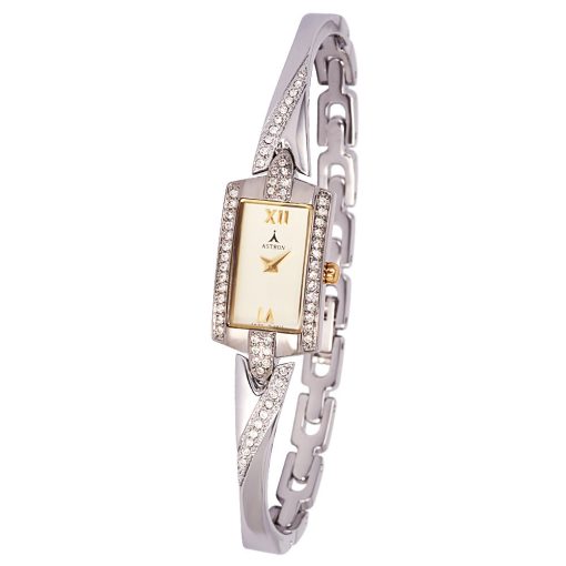 ASTRON 5482-5 női karóra, ékszeróra, bicolor fém tok, ezüst színű fémcsat, pezsgőszínű számlap, keményített ásványüveg, quartz szerkezet, cseppmentes vízállóság