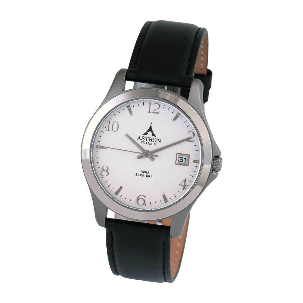 ASTRON 5488-8 férfi karóra, ezüst színű titánium tok, fekete bőrszíj, ezüst színű számlap, zafír, quartz szerkezet, 100 m (10 ATM) vízállóság