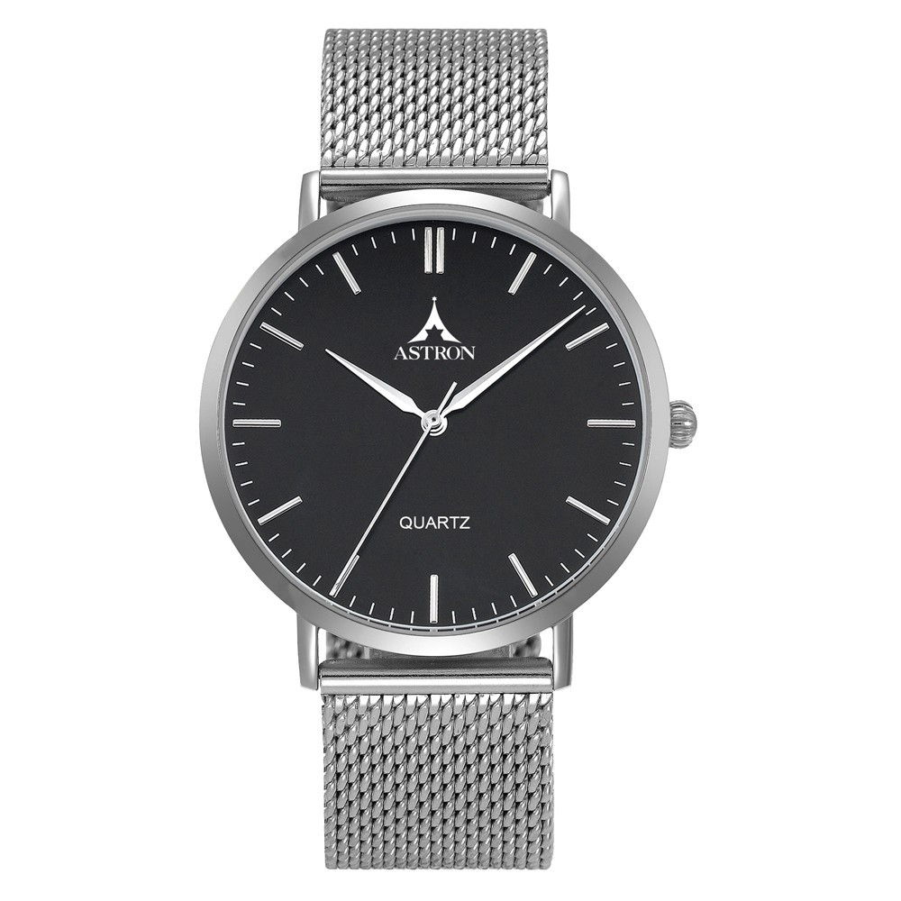 ASTRON 5505-1 férfi karóra, ezüst színű nemesacél tok, ezüst színű nemesacél csat, fekete számlap, keményített ásványüveg, quartz szerkezet, cseppmentes vízállóság