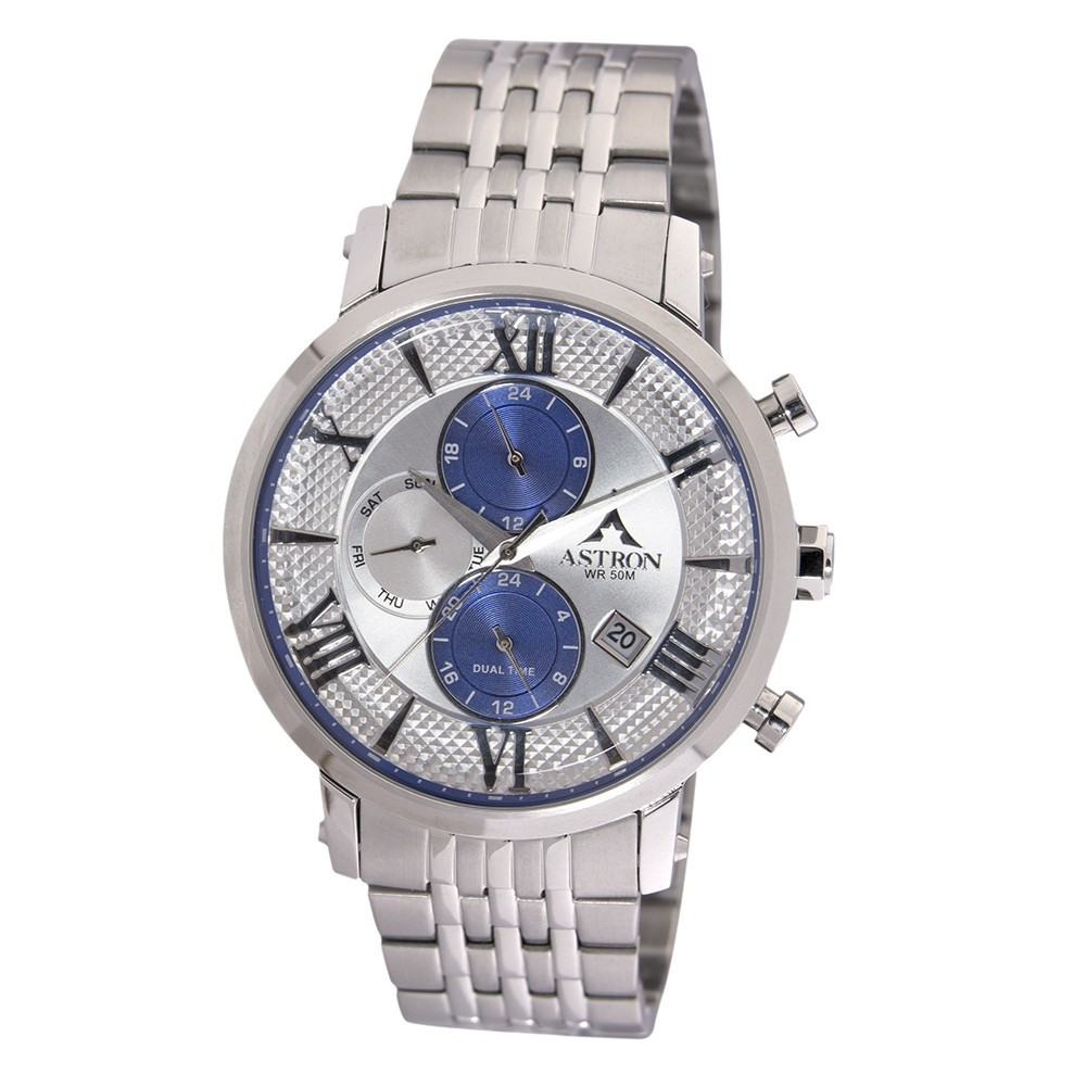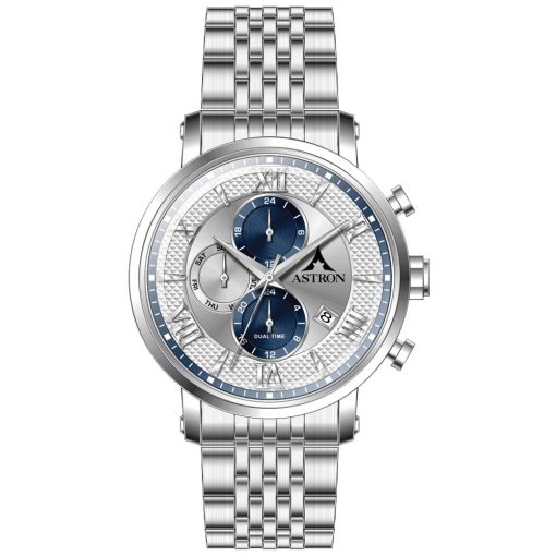 ASTRON 5520-2 férfi karóra, multifunkciós, ezüst színű nemesacél tok, ezüst színű nemesacél csat, ezüst színű számlap, keményített ásványüveg, quartz szerkezet, 50 m (5 ATM) vízállóság