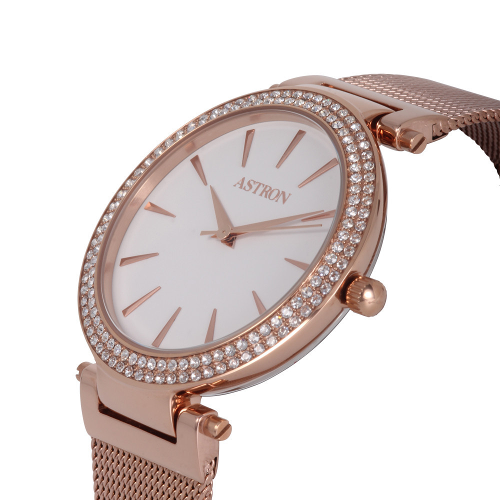 ASTRON 5535-8 női karóra, ékszeróra, rózsaarany színű nemesacél tok, rózsaarany színű nemesacél csat, fehér számlap, keményített ásványüveg, quartz szerkezet, cseppmentes vízállóság