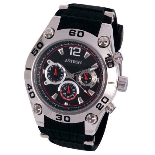 ASTRON 5541-1 extravagáns férfi karóra, ezüst színű nemesacél tok, fekete szilikon szíj, fekete számlap, keményített ásványüveg, chronograph quartz szerkezet, 50 m (5 ATM) vízállóság