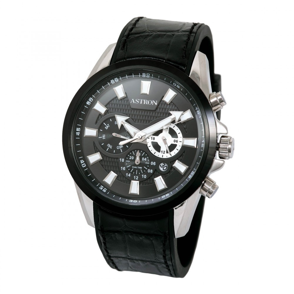 ASTRON 5561-1 férfi karóra, bicolor színű nemesacél tok, fekete szilikon szíj, fekete számlap, keményített ásványüveg, quartz szerkezet, 50 m (5 ATM) vízállóság
