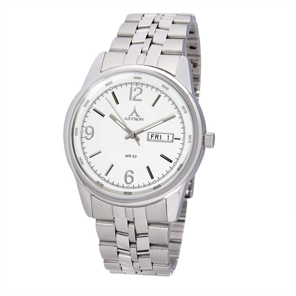 ASTRON 5563-7 férfi karóra, ezüst színű nemesacél tok, ezüst színű nemesacél csat, ezüst színű számlap, keményített ásványüveg, quartz szerkezet, 50 m (5 ATM) vízállóság