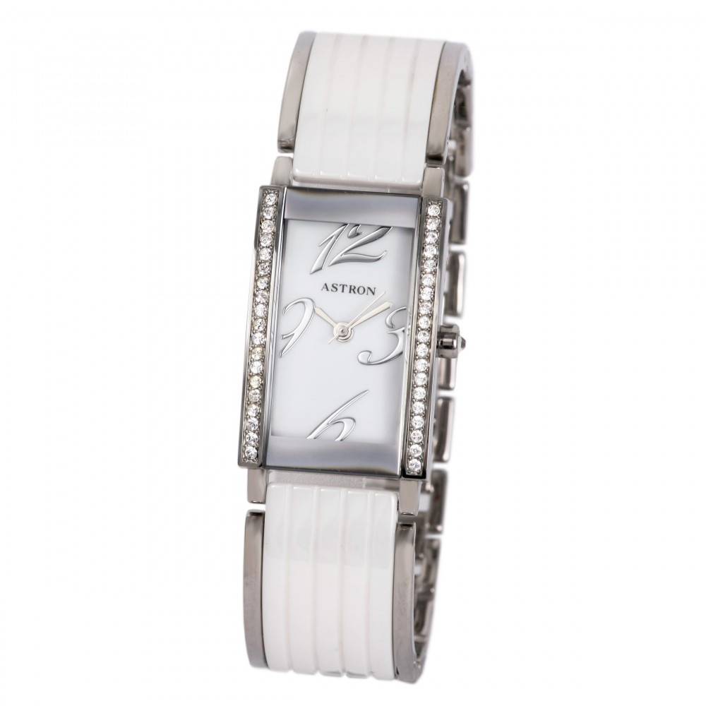 ASTRON 5588-7 női karóra, ezüst színű nemesacél tok, ezüst színű nemesacél csat, kerámia díszítéssel, fehér számlap, keményített ásványüveg, quartz szerkezet, cseppmentes vízállóság