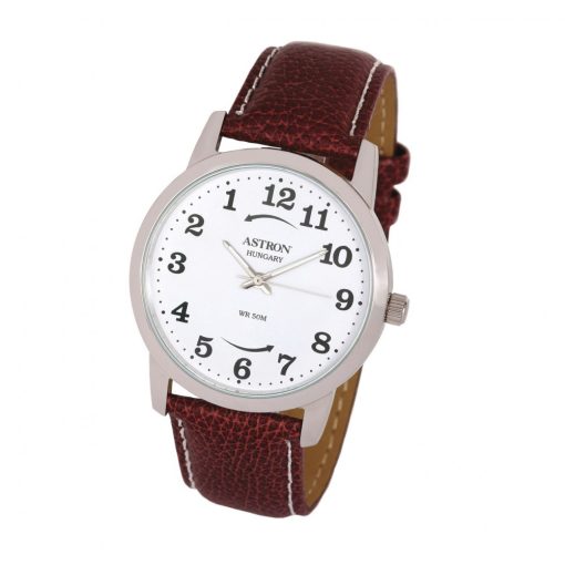 ASTRON 5591-7 férfi karóra, ezüst színű nemesacél tok, barna bőrszíj, fehér számlap, keményített ásványüveg, quartz - visszafelé járó szerkezet, cseppmentes vízállóság