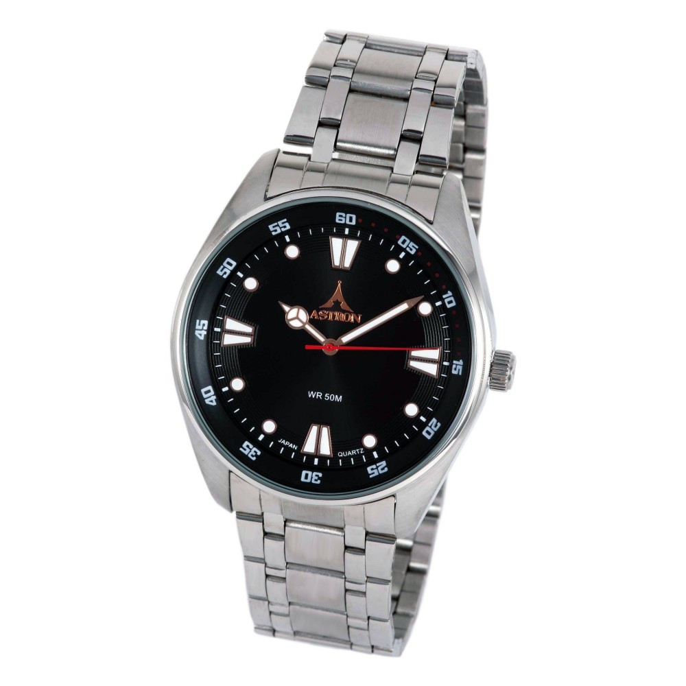 ASTRON 5594-1 férfi karóra, ezüst színű nemesacél tok, ezüst színű nemesacél csat, fekete számlap, keményített ásványüveg, quartz szerkezet, 50 m (5 ATM) vízállóság