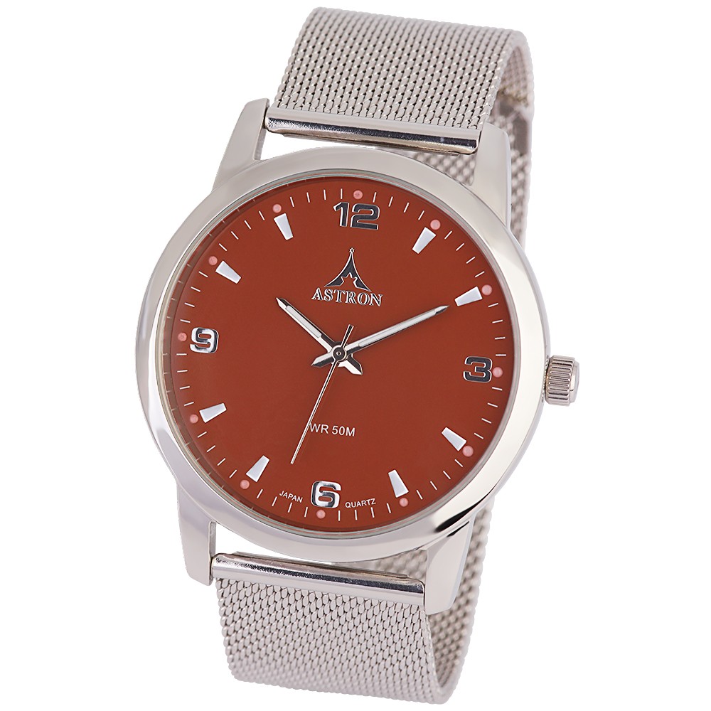 ASTRON 5631-5 elegáns férfi karóra, ezüst színű nemesacél tok, ezüst színű nemesacél csat, arab számos barna számlap, keményített ásványüveg, quartz szerkezet, 50 m (5 ATM) vízállóság