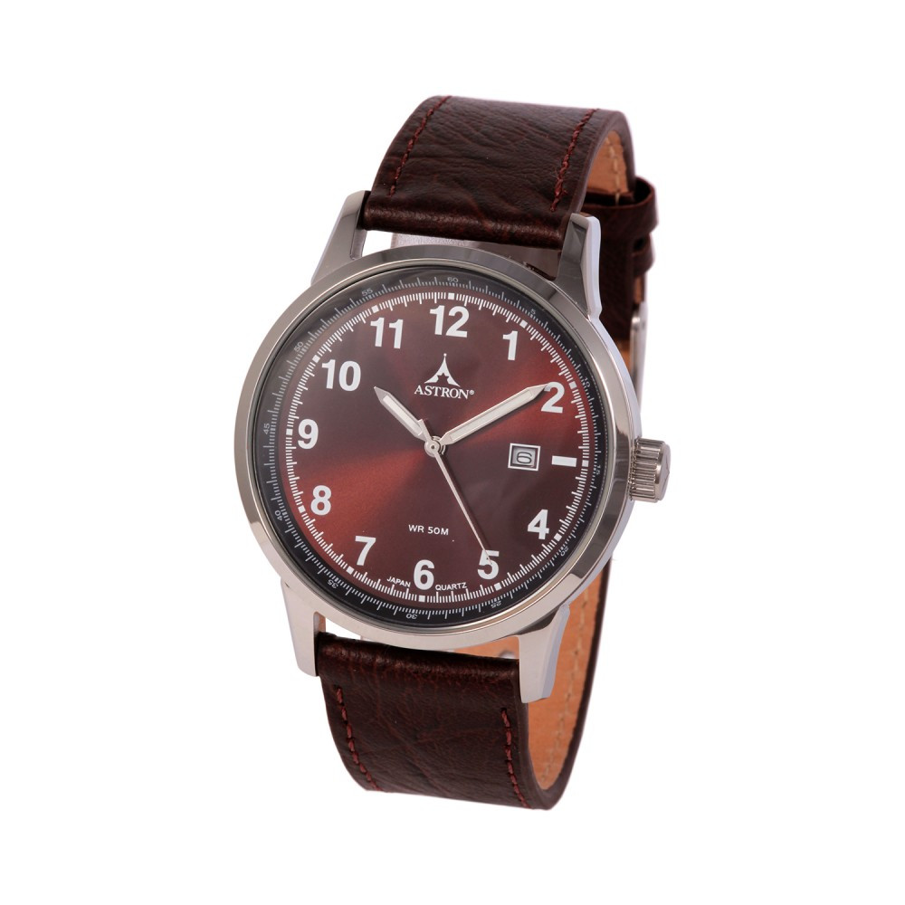 ASTRON 5642-6 férfi karóra, ezüst színű nemesacél tok, barna bőrszíj, barna számlap, keményített ásványüveg, quartz szerkezet, 50 m (5 ATM) vízállóság