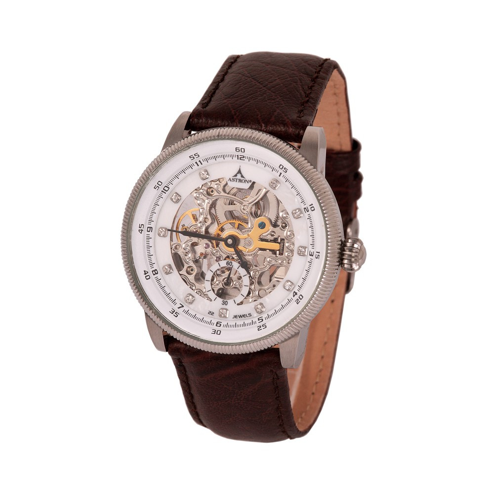 ASTRON 5643-7 férfi karóra, ezüst színű nemesacél tok, fekete bőrszíj, gyöngyház színű számlap, keményített ásványüveg, mechanikus-automata szerkezet, 50 m (5 ATM) vízállóság