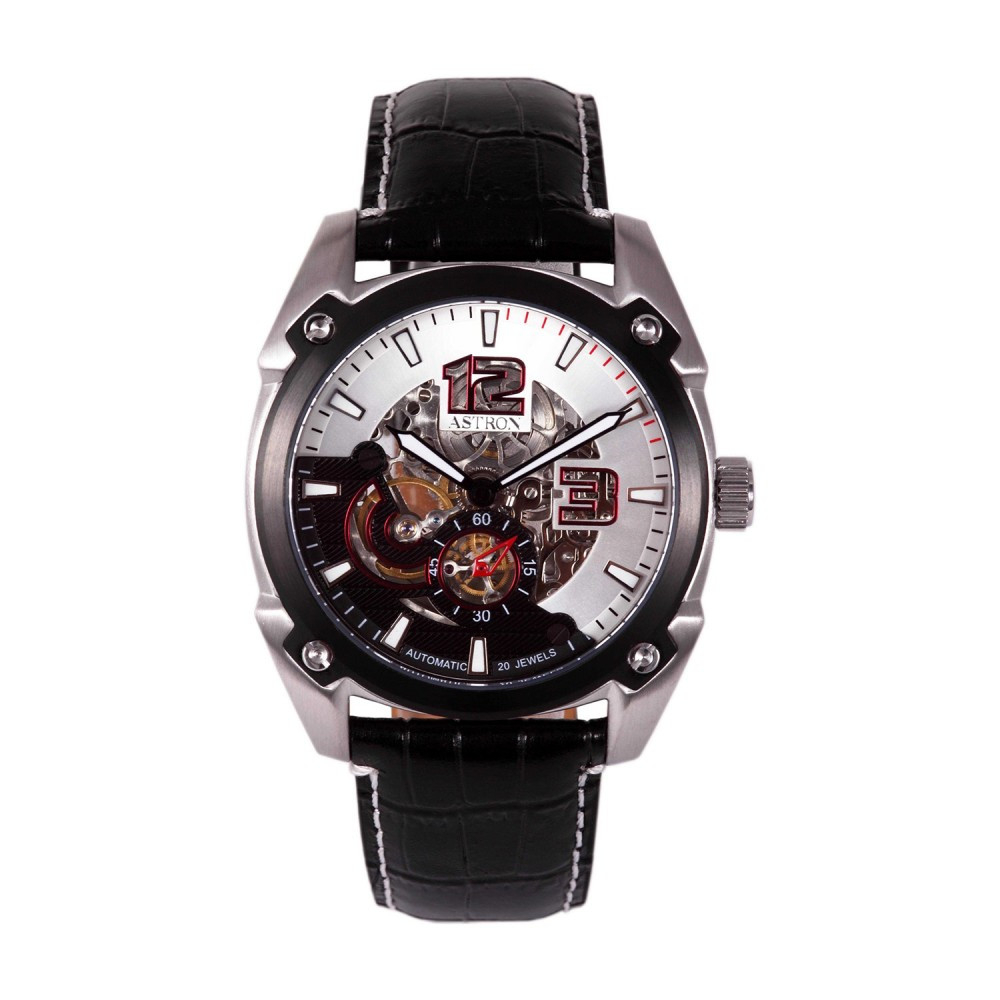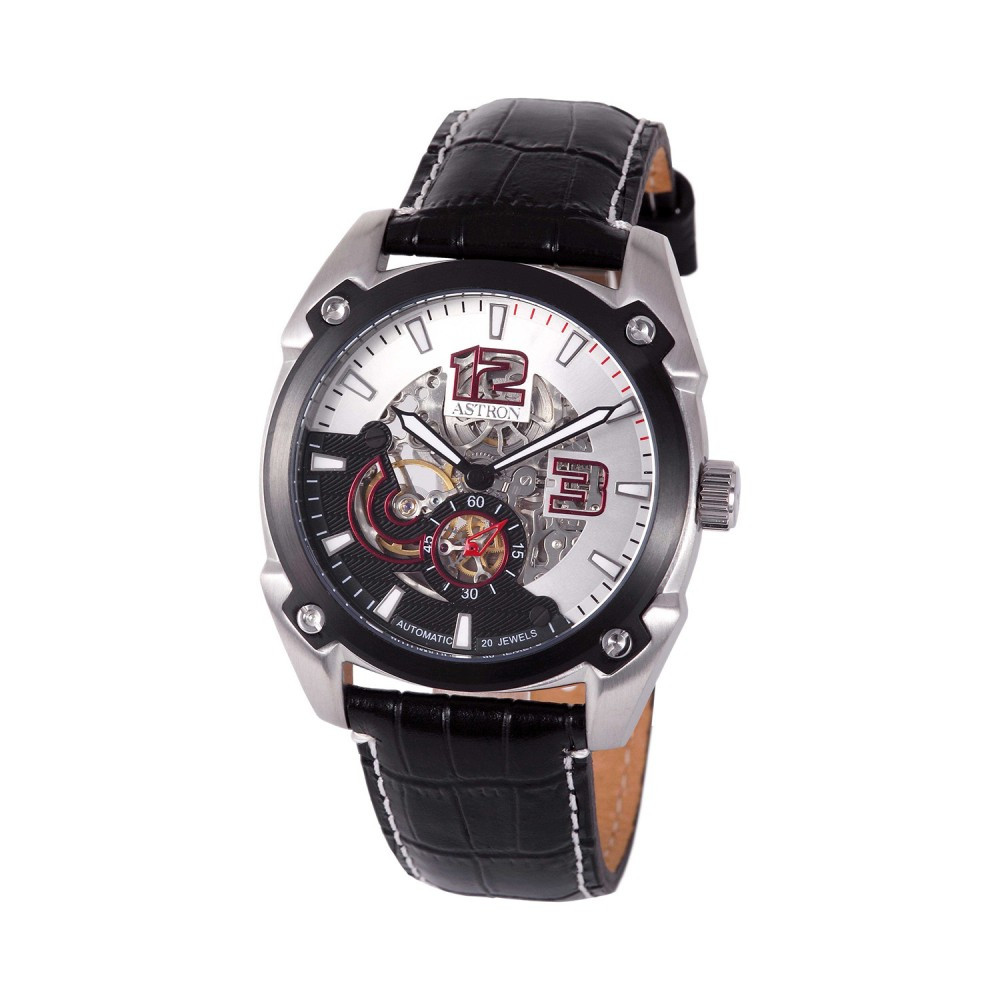 ASTRON 5667-7, mechanikus-automata szerkezet, férfi karóra, ezüst színű nemesacél tok, fekete bőrszíj, ezüst színű számlap, keményített ásványüveg, 50 m (5 ATM) vízállóság