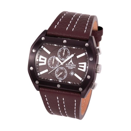 ASTRON 5699-6 férfi karóra, fekete színű nemesacél tok, barna bőrszíj, barna számlap, keményített ásványüveg, chronograph quartz szerkezet, 50 m (5 ATM) vízállóság