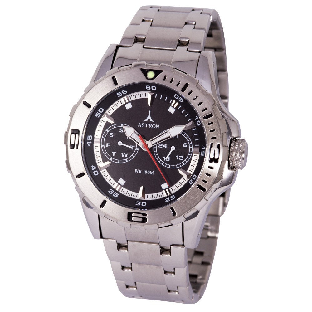 ASTRON 5769-1 férfi karóra, ezüst színű nemesacél tok, ezüst színű nemesacél csat, fekete számlap, keményített ásványüveg, multifunkciós quartz szerkezet, 100 m (10 ATM) vízállóság