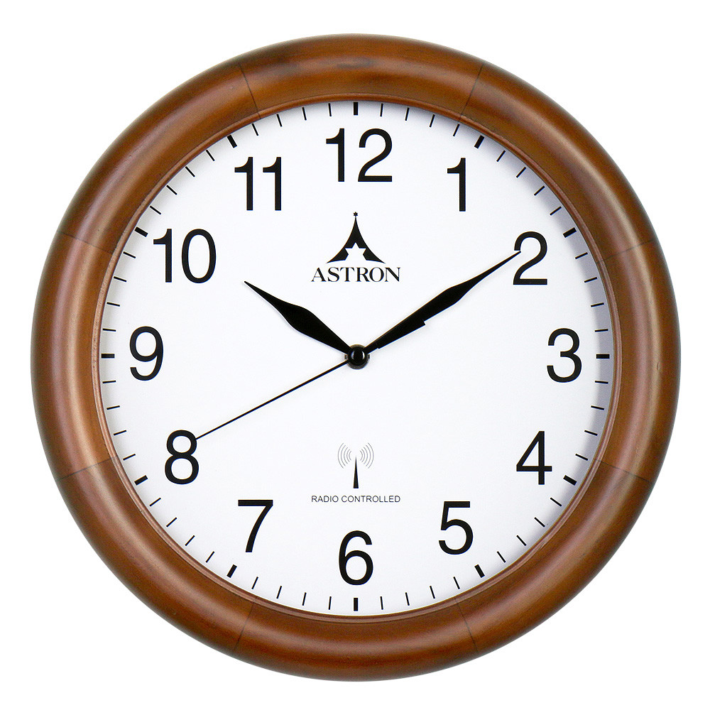 Astron fa falióra, quartz / rádiokontrollos szerkezet, kerek 30 cm, tölgy színű tok, fehér arab számos számlap