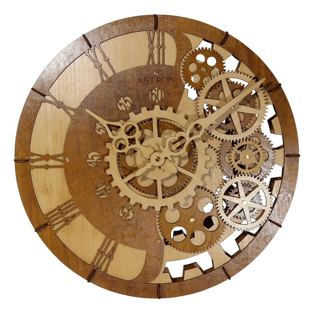 Astron fa falióra, fogaskerekes dizájn, kerek forma, natúr szín