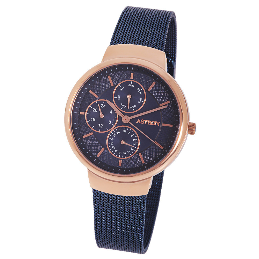 ASTRON 8017-2 divatos női karóra, rózsaarany színű nemesacél tok, kék nemesacél csat, kék számlap, keményített ásványüveg, quartz szerkezet, cseppmentes vízállóság