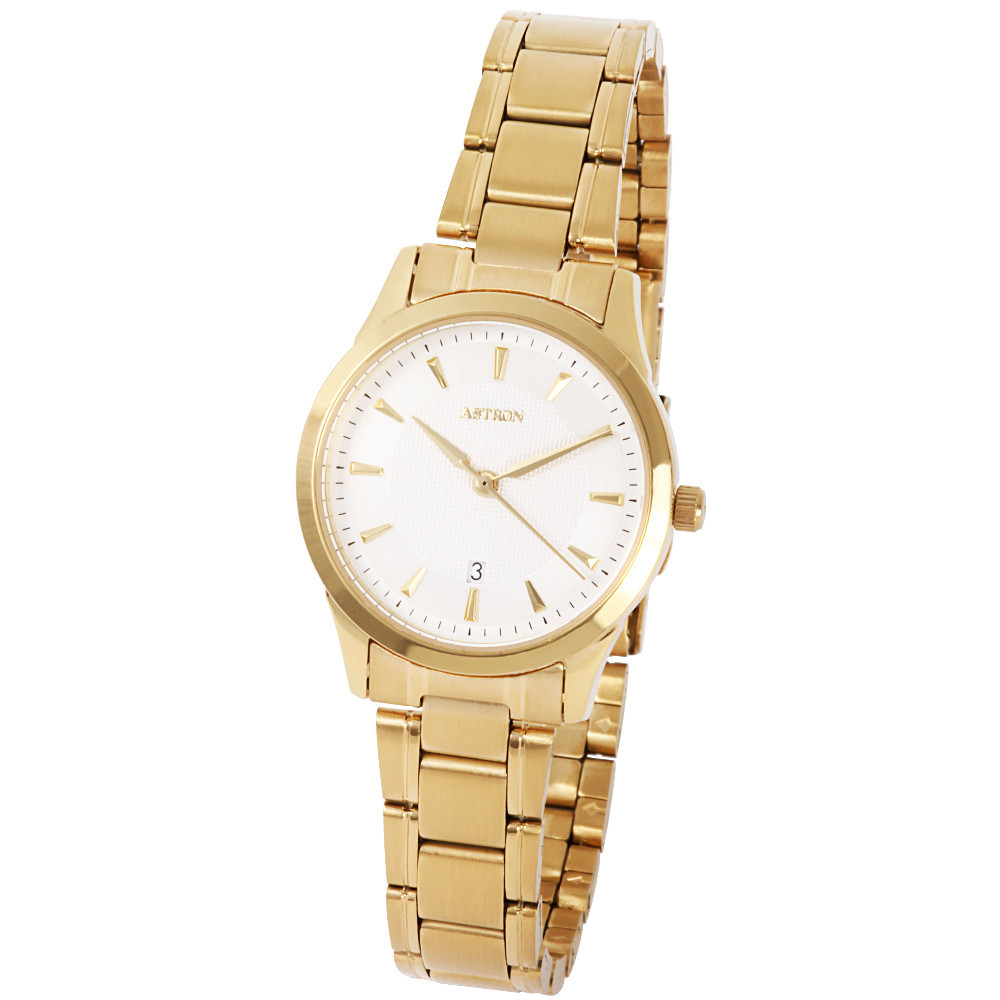 ASTRON 8018-9 elegáns női karóra, arany színű nemesacél tok, arany színű nemesacél csat, fehér számlap, keményített ásványüveg, quartz szerkezet, cseppmentes vízállóság