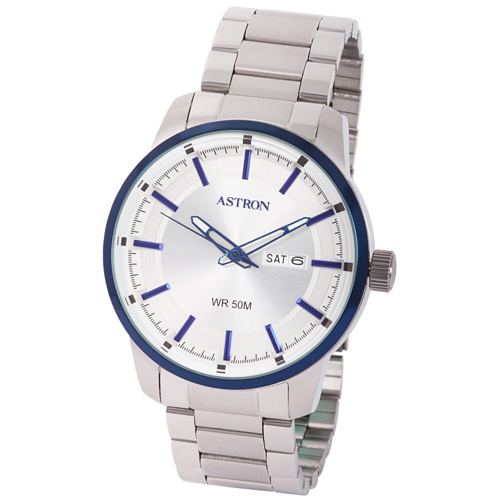 ASTRON 8020-7 sportos férfi karóra, ezüst és kék színű nemesacél tok, ezüst színű nemesacél csat, ezüst színű számlap, keményített ásványüveg, quartz szerkezet, 50 m (5 ATM) vízállóság