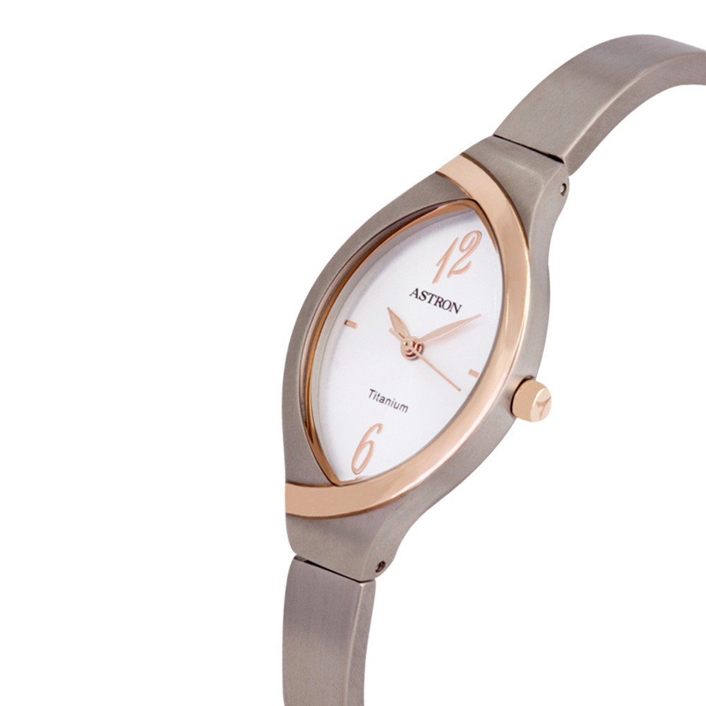 ASTRON 8024-0 női karóra, ékszeróra, bicolor titánium tok, ezüst színű titánium csat, fehér színű számlap, keményített ásványüveg, quartz szerkezet, cseppmentes vízállóság