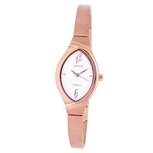 ASTRON 8024-3 női karóra, ékszeróra,rózsaarany színű titánium tok, rózsaarany színű titánium csat, fehér számlap, keményített ásványüveg, quartz szerkezet, cseppmentes vízállóság