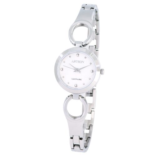 ASTRON 8034-7 női karóra, ékszeróra, ezüst színű nemesacél tok, ezüst színű nemesacél csat, fehér számlap, zafírüveg, quartz szerkezet, cseppmentes vízállóság