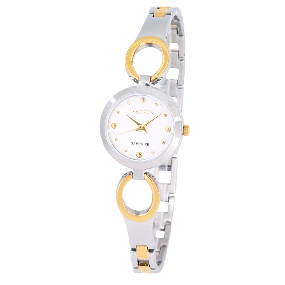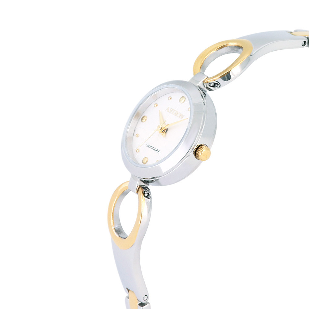 ASTRON 8034-8 női karóra, ékszeróra, bikolor színű nemesacél tok, bikolor színű nemesacél csat, fehér számlap, zafírüveg, quartz szerkezet, cseppmentes vízállóság