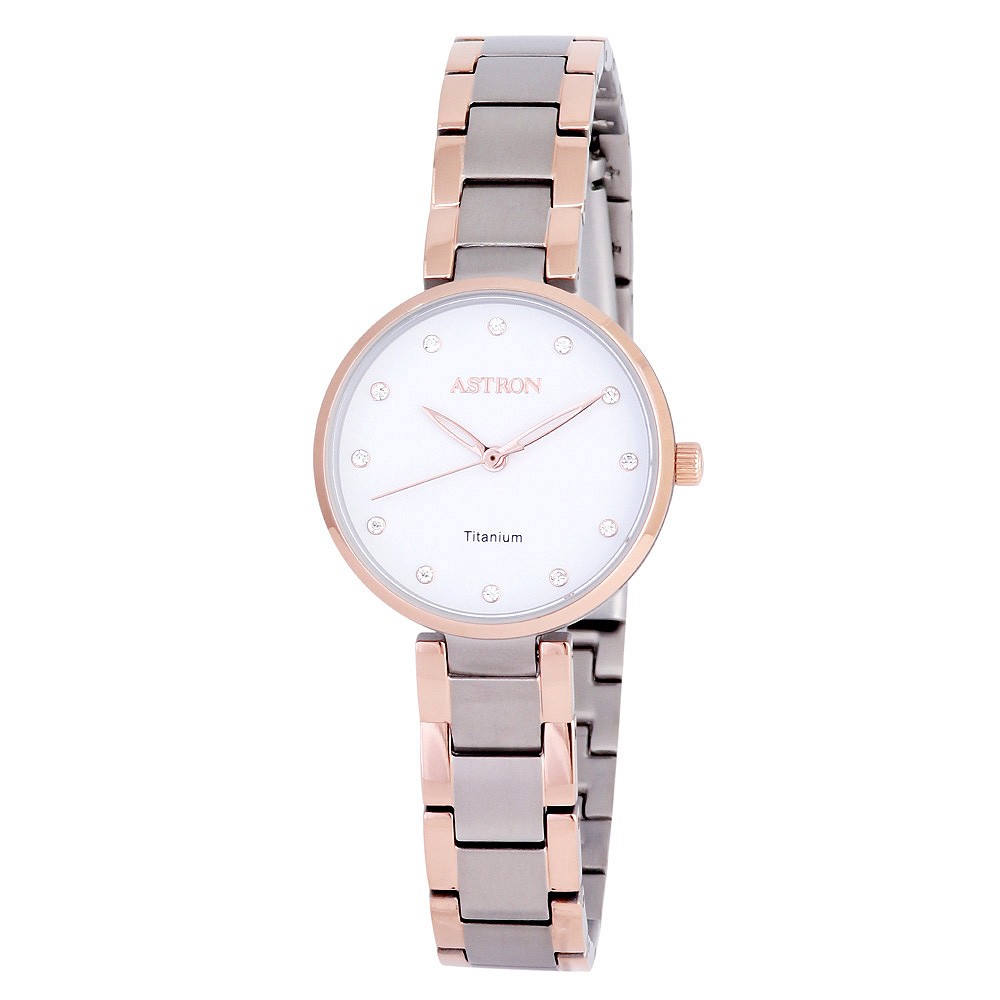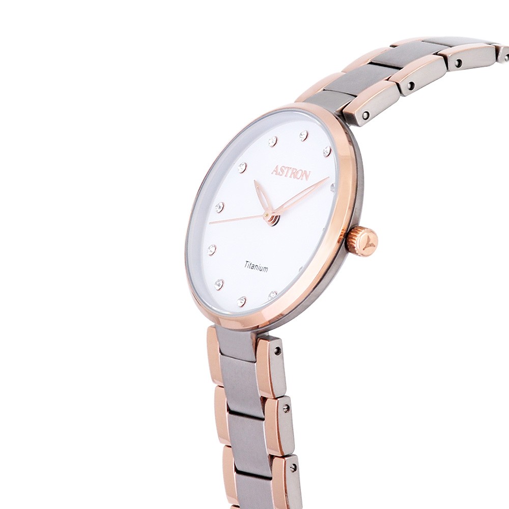 ASTRON 8044-8 női karóra, bicolor (rózsaarany) színű titánium tok, titánium csat, fehér számlap, keményített ásványüveg, quartz szerkezet, 50 m (5 ATM) vízállóság