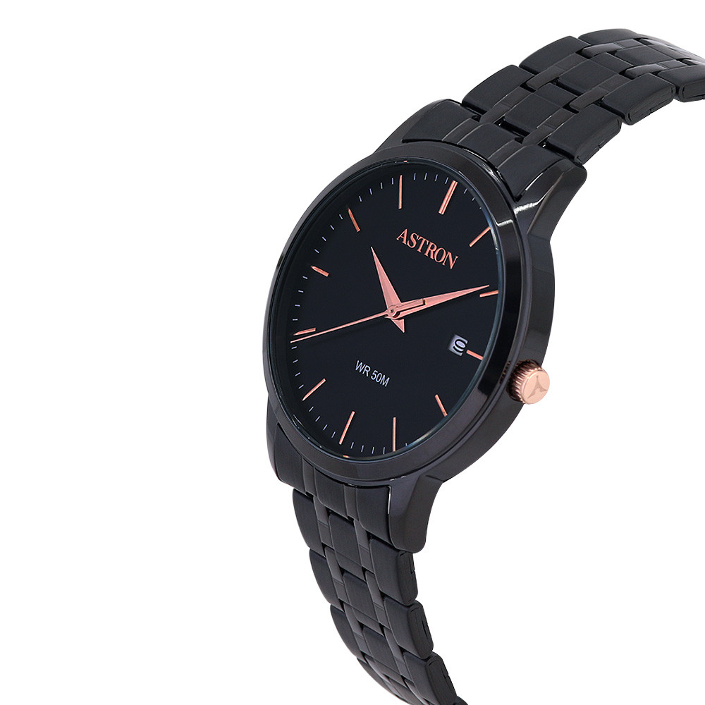 ASTRON 8045-1 férfi karóra, fekete színű nemesacél tok, fekete színű nemesacél csat, fekete számlap, keményített ásványüveg, quartz szerkezet, 50 m (5 ATM) vízállóság