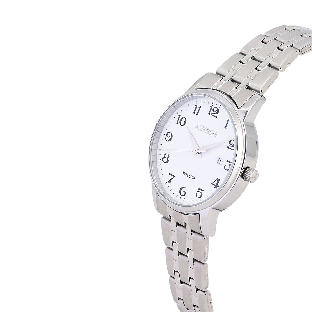 ASTRON 8047-7 női karóra, ezüst színű nemesacél tok, ezüst színű nemesacél csat, fehér számlap, keményített ásványüveg, quartz szerkezet, 50 m (5 ATM) vízállóság