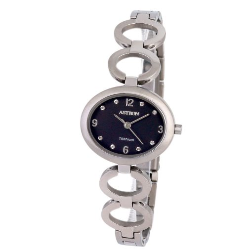 ASTRON 8051-1 női karóra, ezüst színű titánium tok és csat, fekete számlap, keményített ásványüveg, quartz szerkezet, cseppmentes vízállóság