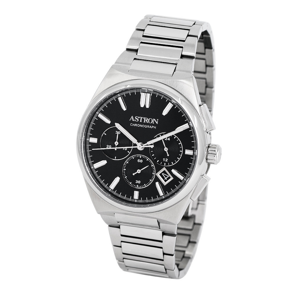 ASTRON 8058-1 férfi karóra, chronograph, ezüst színű nemesacél tok, ezüst színű nemesacél csat, fekete számlap, keményített ásványüveg, quartz szerkezet, 5 ATM vízállóság