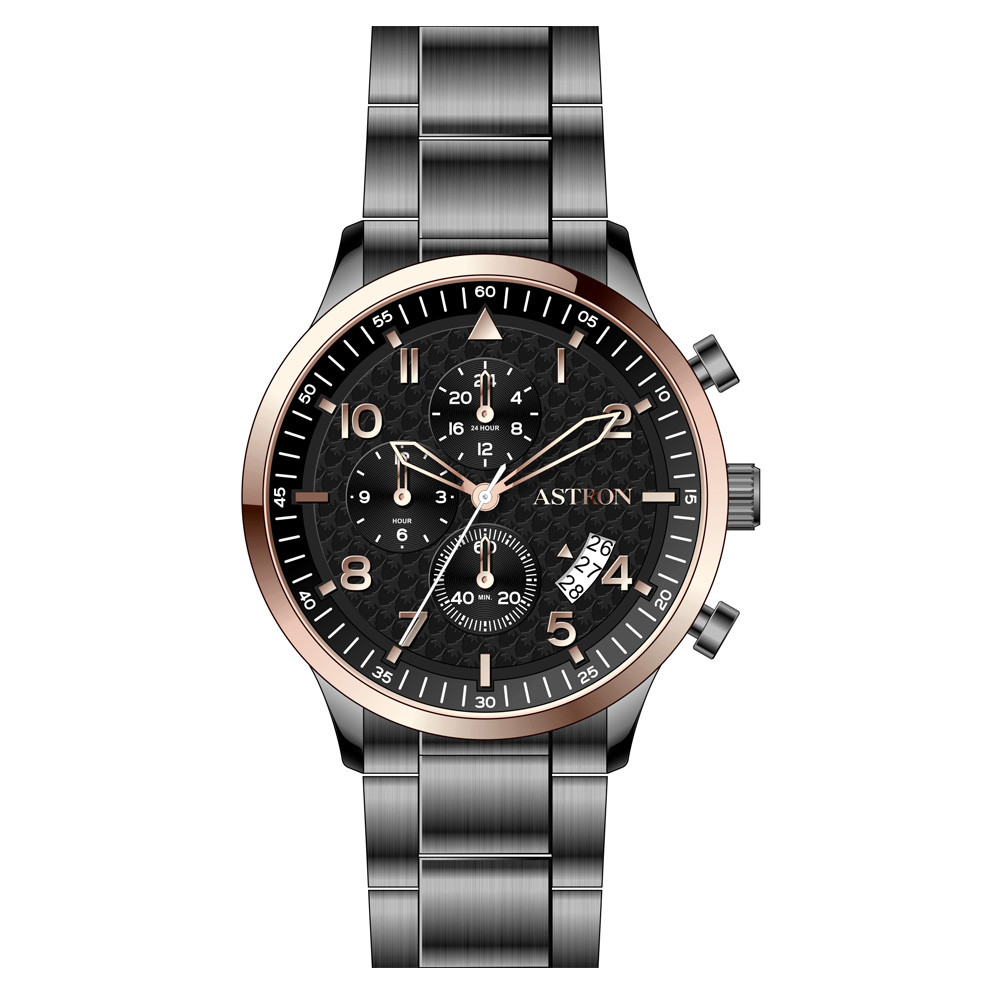 ASTRON 8059-0 férfi karóra, bicolor (gun+rózsaarany) színű nemesacél tok, gun színű nemesacél csat, bicolor (gun+rózsaarany) számlap, keményített ásványüveg, quartz szerkezet, 5 ATM vízállóság