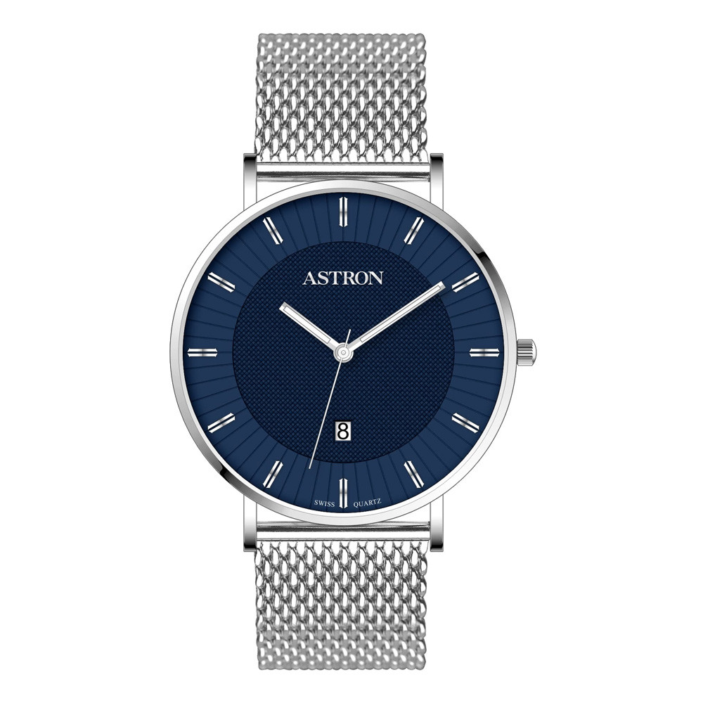 ASTRON 8061-2 férfi karóra, ezüst színű nemesacél tok, ezüst színű nemesacél csat, kék számlap, keményített ásványüveg, quartz szerkezet, 50 m (5 ATM) vízállóság
